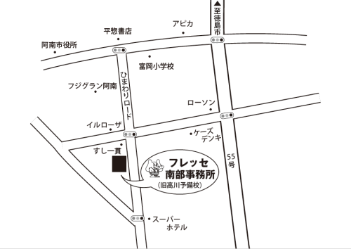 この度、阿南市那賀川町のフレッセ南部事務所が7月1日より下記のとおり移転することとなりました。 皆さま方にはご不便をお掛け致しますが、何卒ご理解の程よろしくお願いします。 【新住所】〒774-0015 阿南市才見町三本松49番1-2階 【TEL】0884-24-8120 【FAX】0884-24-8065(変更なし) 駐車場は建物北側敷地内をご利用ください。 お知らせ